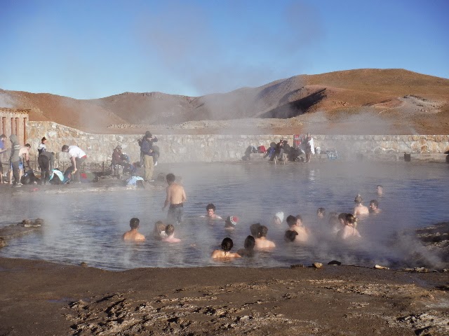 The first day I just wandering around the streets and the remaining days visiting some of the must-see sights. The following day it was a 4.30 am rise and a one and a half hour trip in the pitch black out to Geysers del Taito, the third largest geyser field in the world. In the pre-dawn light and at 4,400 metres we were greeted with a plateau of steaming vents The temp was -4 so the steam showed up very well. None of the vents were gushers but it was pretty impressive none the less. We had breakfast on sight just as the sun rose over the Andes. Later the hardy ones went for a swim in a hot pool.